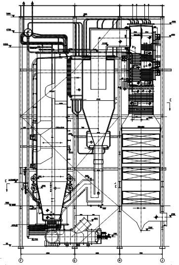 循環(huán)流化床燃燒方式鍋爐為單汽包、自然循環(huán)、,島式半露天布置。