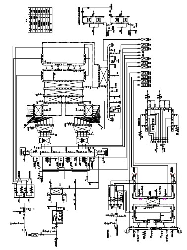 如附圖3, 鍋爐汽水系統(tǒng)回路包括尾部省煤器、鍋筒、水冷系統(tǒng)、汽冷式旋風(fēng)分離器進(jìn)口煙道、汽冷式旋風(fēng)分離器、HRA包墻過(guò)熱器、低溫過(guò)熱器、屏式過(guò)熱器、高溫過(guò)熱器及連接管道、低溫再熱器、屏式再熱器及連接管道。