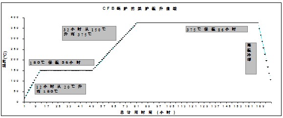 新富華推薦上圖所示的通用烘爐曲線(也可以協(xié)商采用業(yè)主或耐火材料廠家要求的溫升曲線)。